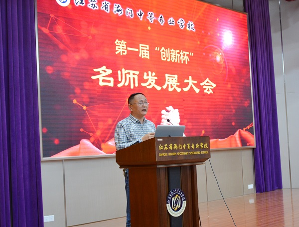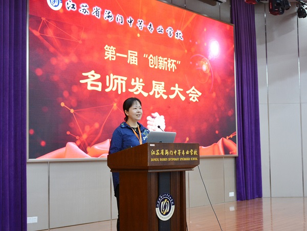 为进一步优化师资队伍、打造高素质专业化创新型教师队伍, 10月21日,我校召开了第一届“创新杯”名师发展大会。副校长陈小军、全体市级以上骨干教师及青年教师代表共200余人参加会议。科研部主任杨一丹主持会议。 首先,是“名师示范”环节。杨一丹宣读了2018-2019年度海门中专优秀师徒名单,表彰了在教师教学创新团队建设中取得优异成绩的20位教师。