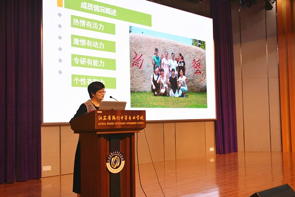随后,是“名师叙事”环节。“原味语文”名师工作室领衔人吴开宇老师介绍了以名师工作室为载体进行名师团队建设的工作理念。她从名师发展的途径进行了经验介绍:在思辩中迸发灵感,在严谨中追寻美感,在推敲中增加质感,在活动中生成趣感,在工作中获得存在感,积极发挥工作室在名师发展过程中的引领、示范、指导和辐射作用。黄蓉蓉老师回顾了自己从青年教师成长为骨干教师的历程,她表示会将自己的工作经验毫无保留的传授给青年教师,为学校名师发展贡献自己的智慧。黄老师的讲解深入浅出、富有智慧,使全体与会成员深切感受到了名师的人格魅力,同时也受到了极大的鼓舞。