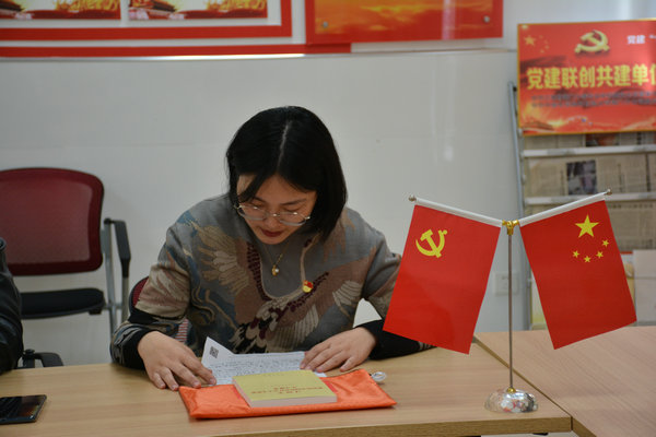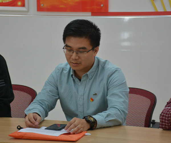 徐亮书记组织完成交党费的常规动作后由党员代表陈泓宇领学《党章》中关于党员义务的内容。所有党员认真学习党章,坚持看齐意识,弘扬担当精神,不断增强自身的党性修养。