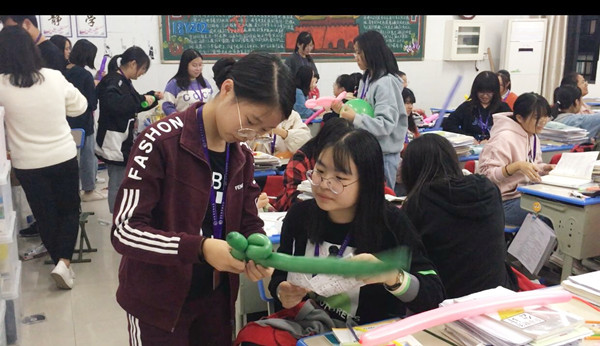 在同学们热情的期待中,我们“魔术气球”社团第一节课终于到来了。我们先学了最基本的打气和打结。光是这两步就难倒了很多同学,气打得太多容易发生破裂,气打得太少便会使气球太短而无法编织完一整个造型。有一些经验的同学便成了宠儿,忙前忙后地教导指点其他同学。到了打结的步骤,打结有三种方法,分别是正手打结法、单手打结法、反手打结法,这个可难不倒我们的同学们。