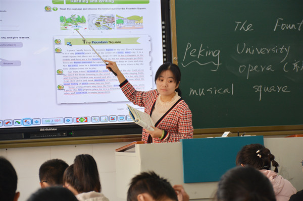 课堂伊始,王松老师采用图片导入法导入新课,激发同学们的学习积极性,随后从三个问题入手对整篇文章进行讲解,从而帮助学生掌握描述一个地方的技巧。王老师由浅入深,环环相扣,营造师生互动浓厚氛围。最后,同学们通过小组合作方式学会使用名词、形容词以及动词和相关句型来描述东洲公园,学以致用。这种方式既锻炼了学生,又活跃了氛围,收到良好成效。