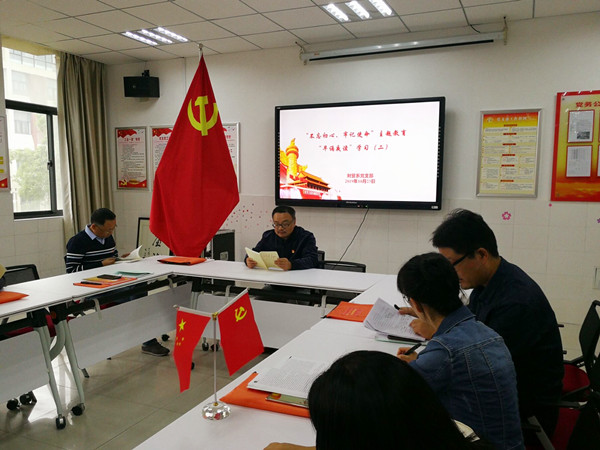 为深入学习贯彻习近平总书记在“不忘初心、牢记使命”主题教育工作会议上的重要讲话精神,根据学校“不忘初心、牢记使命”主题教育领导小组通知精神,财贸系党支部于10月23日上午9:30,在D226党员活动室组织开展了“不忘初心、牢记使命”主题教育第二次“早诵夜读”集中学习活动。