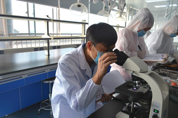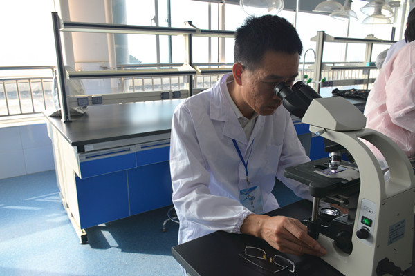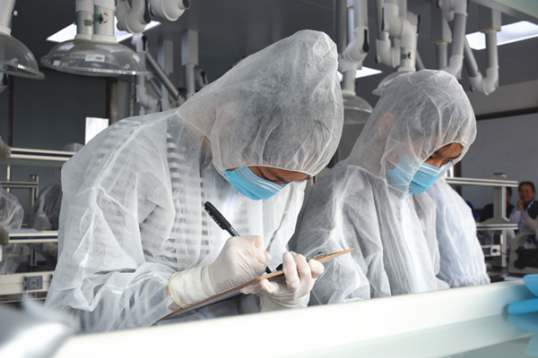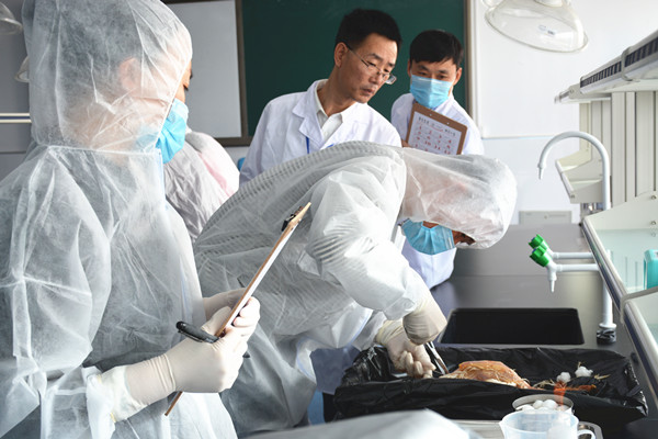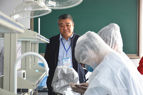24日上午7:30,准时开始检录。第一组参赛选手们开始抽取工位号,签名。他们换上无菌服,带好口罩等防护设备,然后耐心坐在检录处等候开赛。8:00,比赛正式开始。参赛选手们两两配合默契,通力协作,一人操刀剖解,一人观察显微镜、填写报告,操作流畅,技巧娴熟;裁判员认真履行职责,严格执行赛项规则,公平公正执裁。为期两天的比赛管理严密,紧张有序,扣人心弦。