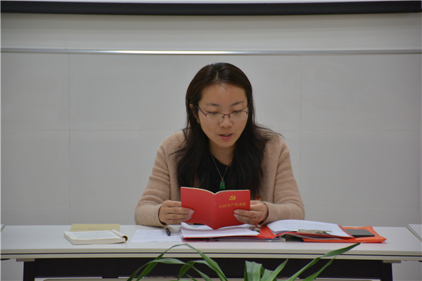会上,一是由支部书记吴樱樱同志领读《党章》中关于全心全意为人民服务的基本要求。二是由党员代表张丽丽同志领读习近平总书记最新重要讲话文章。