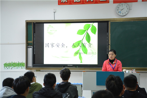 为了让学生牢固树立国家安全观,增强国家安全意识,10月28日上午班会课,建工系各班组织开展了“国家安全,人人有责”主题班会活动。