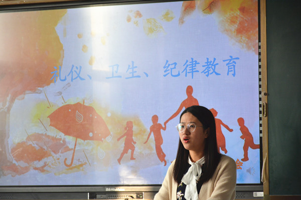养成教育与加强学生一日常规有机融合,通过日常潜移默化的常规训练,使这些良好的行为逐渐内化为学生的自我行为与习惯。努力引导学生发展成为言行有度,举止有礼,励志卓越的学生。(季丹)
