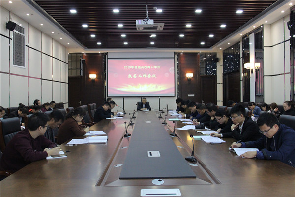为了做好2020年普通高校对口单招网上报名与确认工作,10 月 28 日上午 9点20 分,我校在 A 楼二楼阿里厅召开报名工作会议,会议由教学工作部主任施晓东主持,周桂岐副校长出席会议并作讲话。 会上,钱玉强副主任首先解读了我校2020年普通高校对口单招报名工作方案,就报名工作进行了细致的工作布置,对网上报名流程、时间安排、有关说明等内容作了详细的说明。随后,张永老师就信息、图像采集、网上填报、评语成绩等作了操作层面的说明。 最后,周校长围绕三个方面就此次报名工作提出总体要求:一是思想上高度重视,熟悉理解政策,各系要派专人负责;二是行动上精准实施,要分清类别,认真指导学生填写;三是材料上确保完成,要关注时间节点,按照规定的时间完成与落实。 各系主任、教学分管主任、2017 级对口单招班和中职专业班主任及教学工作部相关成员近60人参加了此次会议。