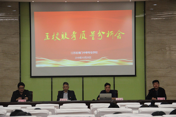 10月28日下午1点20分,我校在E楼精匠报告厅召开2019年南通市五校联考分析会。会议由教学工作部主任施晓东主持,副校长周桂岐出席会议并作重要指示。会议主要有四项议程: 第一项议程由施晓东主任作质量分析。他用具体的数据对各专业、各班级的测试情况以及匹配度进行了全面、细致的剖析,使老师们从不同层面、不同角度对自己所任教学科的现状有了更深入、更清晰的认识。 第二项议程由两系部英语、化工、数学、服装备课组长对各自学科作了诊断分析,阐述了高考备考复习策略。 第三项议程由系主任交流本系部高三状况及后阶段教育教学部署。两位主任就各自系部存在的问题进行了务实、中肯的阐述。财贸系主任王飞通过和去年同期南通市联考成绩纵向比较,谈了后期奋斗目标;电信系主任江勇结合系部当下做法讲了下阶段奋进的方向。 第四项议程由周桂岐副校长作总结发言。他首先肯定了高三教师在前阶段的辛勤付出,随后从三个方面指明了后阶段努力目标:一是从分析优势到寻找短板,二是从少数优课到全面优课,三是从苦练技能到科学训练。 本次会议,针对目前高三教学情况,提出了后期行之有效的具体做法,相信在学校领导的高度重视下,全体高三教师一定会凝心聚力,脚踏实地,为2020年高考再创辉煌奠定扎实的基础。