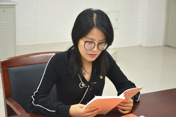 接着,支部委员李媛领读了《习近平关于“不忘初心、牢记使命”论述摘编》第三章的内容。本章节重点指出了理论武装的必要性,阐明全党要深刻领会新时代中国特色社会主义思想的精神实质和丰富内涵的道理。