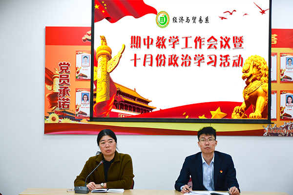 10月29日上午9:20,经贸系在C2楼209会议室召开全体教师会议,经贸系主任施红华主持会议。