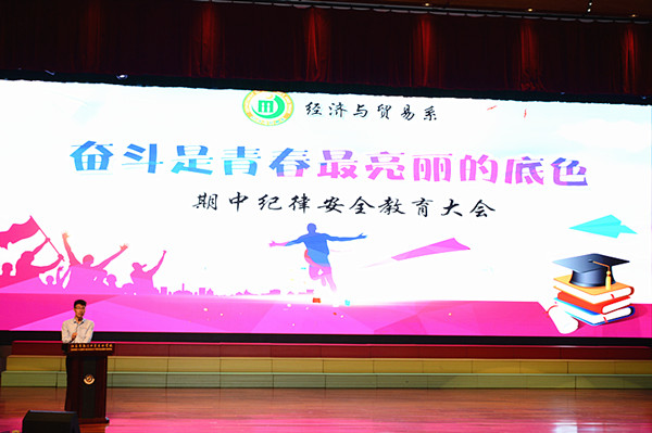 秋风送爽,期待收获。10月29日下午3:30经贸系在学校科教大会堂召开了全体学生“期中纪律安全教育大会”,经贸系副主任陈忠平、周晟以及全体班主任和学生参加了本次会议。大会由经贸系副主任陈忠平主持。