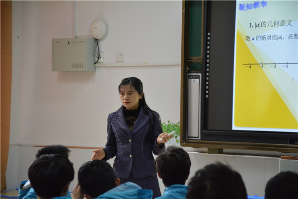 高老师以社会主义核心价值观中的“诚信经营”为切入背景,从食品包装重量范围引出课题,可谓别开生面。在学生已有不等式性质和绝对值的代数几何意义基础上复习引入,让学生理解绝对值不等式的等价条件,从而掌握简单的绝对值不等式的解法,重点是不等式的求解,难点是强调去绝对值后的不等式与元不等是的等价性。高老师以“课件教学,任务驱动,自主探究”为抓手,围绕“含绝对值的不等式”展开教学活动。本课程充分发挥学生的小组互助学习的功能,让同学们在发现中自主探究,在思考中领悟,在讨论里碰撞思维的火花。无论是“海问”还是“个问”,还是小组代表回答,都能看到同学们积极向上的求知欲。