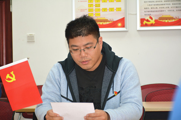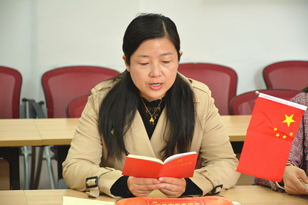 活动二:由党员代表尹金珠同志带着大家共同学习《党章》中关于党员义务的内容,党员同志们在诵读中,重温了《党章》的重要内容。