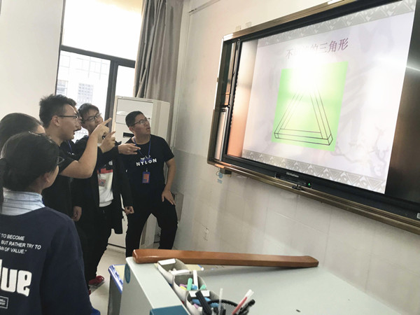 在社团活动中,各社员积极参与,氛围浓厚,他们对于数学有了更深更广的了解。下课了,很多社员还依依不舍,主动留下来与老师探讨一些知识,讲述自己的观点,同时希望后面多拓展,让他们能更多的探索和学习。(钮锦辉)