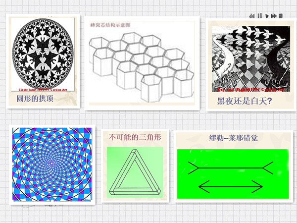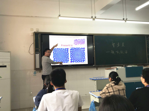 本次活动的主题是趣味数学,以讲座和学生参与的形式展开。活动共分四个项目:(1)数学趣图(2)动物天才(3)数学对联(4)数学趣题。比如数学趣图,涉及到了FRASER螺旋、缪勒—赖耶错觉、回环诗图、填充错觉、大小恒常性错觉等;又如动物天才,涉及蜜蜂蜂房六角柱状体、蜘蛛结八卦形网、珊瑚虫“日历刻画”等等。