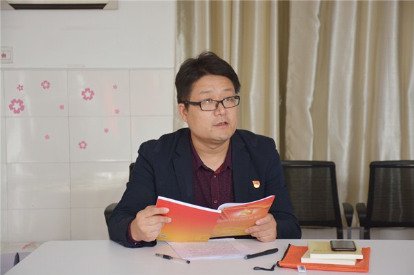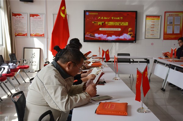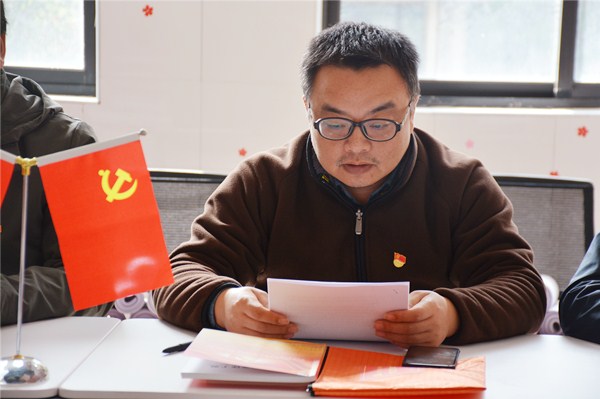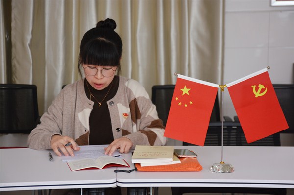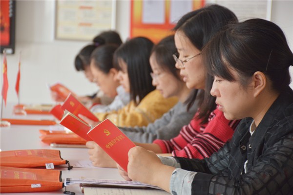 第一个议程是诵读党章。党支部书记王飞同志领读《党章》,大家跟随一起朗读了《党章》中关于全心全意为人民服务基本要求的相关章节。