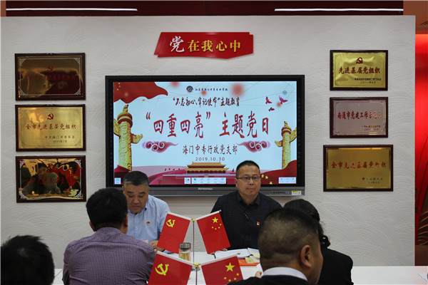 为了深入贯彻在“不忘初心、牢记使命”主题教育中开展“四重四亮”活动的相关要求,通过重读入党志愿、重温入党誓词、重忆入党经历、重问入党初心,引导支部党员坚守初心使命,勇于担当作为,在岗位上充分发挥先锋模范作用,10月30日下午三点一刻行政支部开展“四重四亮”主题党日活动,活动由支部书记洪龚明主持,徐忠等党委委员以普通党员身份参加双重组织生活会,宋健同志代表党委参加活动,入党积极分子杨滨榕也积极参与行政支部主题党日活动。本次活动主要有五项环节。 活动之前,全体支部同志观看党员公益短片。活动伊始,全体起立,奏唱国歌。随后,洪龚明简短汇报了行政支部10月份党费收缴情况。洪书记对全体党员积极缴纳党费的意识和行动表示肯定。 接下来正式进入四重环节。党员们依次宣读入党志愿书关于入党动机和表态的核心内容,牢记入党初心。整个宣读过程严肃、认真。随后,宋健、茅一娟、马建国、洪龚明等同志分享了各自入党经历,并围绕“入党为什么、成长靠什么、为党干什么”发表了自己的看法,大家怀着崇敬和向往之情加入党组织,并愿意为共产主义事业奉献终身。 随后,由支部书记洪龚明领誓,重温入党誓词。铮铮誓言、坚定承诺,进一步坚定了信仰信念。 接下来,进入四亮环节。洪龚明与支部党员共同明确本支部“四亮”具体办法。洪龚明围绕“党员亮身份、服务亮承诺、工作亮标准、担当亮作为”提出自身的几点思考,接着,党员们共同宣读海门中专行政党支部党员行动标准并签字承诺。洪龚明、黄蓉蓉和蔡文宇等结合自身工作实际查摆存在问题,许下整改承诺。大家在“理论学习不足、创新思维不足、联系学生不足”等方面认真剖析,并提出整改措施,力争未来有更出色的工作业绩。 本次活动还进行“点亮微心愿,情暖学子心”行动。支部党员为建工系18TZ02班李锦坤同学购买了一个电饭煲,“微心愿”点亮公益心,希望他能安心学习,早日学成反哺社会。 最后,党委书记宋健对本次支部“四重四亮”活动作五点总结。宋健首先肯定了支部党员积极参与活动的热情,也肯定了支部党员很有针对性的发言内容。宋健指出,第一,行政支部应走在各支部的前列,起到带头引领作用,作为管理者,就应该在实际工作中践行初心、担当使命,用自己的力量推动学校高质量发展。第二,支部党员要强调奉献精神,将学校的利益放在心中;第三,行政支部党员用好手中职责,多多解决一些师生迫切需要解决的问题,禁止推诿、扯皮现象出现,要用锲而不舍的精神抓住问题牛鼻子,让全体师生更安心的教与学;第四,支部党员同志要牢记共产党人“艰苦朴素”的工作作风,严禁铺张浪费;第五,行政支部党员要在全体党员中树立鲜明的榜样,充分发挥行政党员的先锋模范引领作用,想得更全、思得更深、做得更好、落得更稳、成就更高。 本次主题党日活动,将“不忘初心使命、践行四重四亮”作为会议的核心内容,坚定了支部党员全心全意为人民服务的信念。