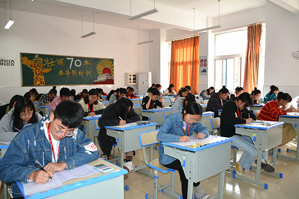 10月29日下午大课间,班主任组织学生进行考场布置,按照标准,35人一个考场,清空桌肚,拉开桌距,学生个人物品统一放置讲台处。