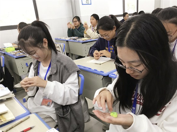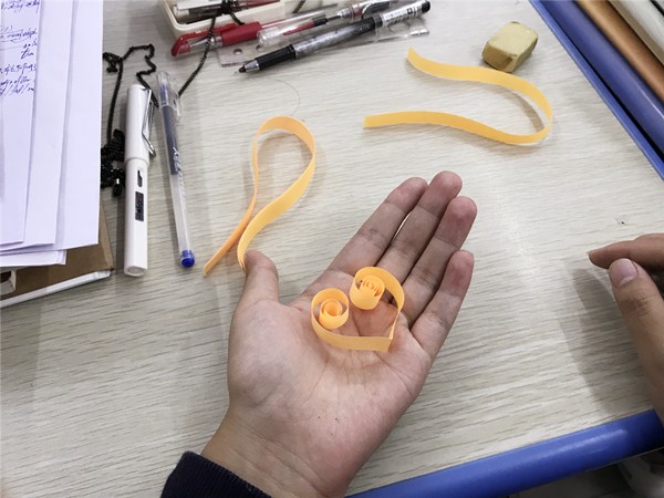 最后,指导老师向同学们展示了一些衍纸的手工作品。大家听得非常认真,展现出浓厚的兴趣,并纷纷小试牛刀,发挥自己的动手能力,初步学会了一些结构简单的衍纸卷法。(指导老师:张丽)