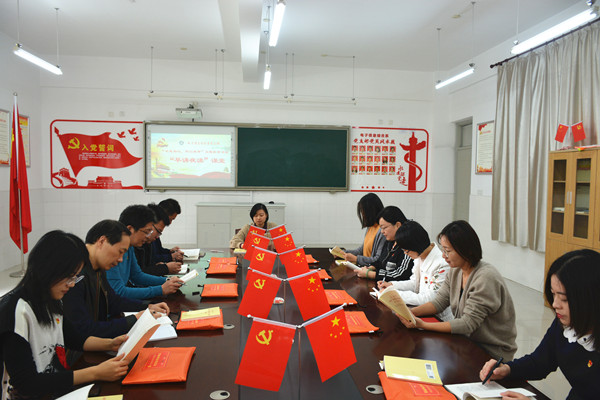 11月7日中午12点,电信系支部党员集中在118党员活动室,开展第四次“不忘初心、牢记使命”主题教育“早诵夜读”学习活动。