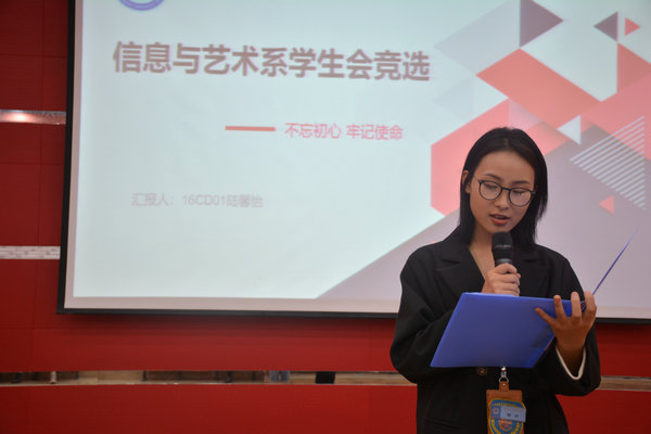 为选拔出品学兼优的新一届学生会骨干,顺利完成学生干部的新老交替,充分发挥学生会自我教育、自我管理,自我服务职能,11月7日12:10,信息系第四届学生会干部竞选大会在H楼报告厅举行,参与本次大会的有系部德育主任沈豪杰、主任助理周莉以及所有候选人和各班团干部。
