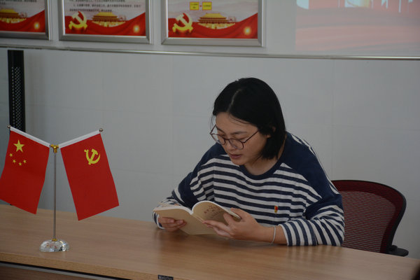 本次诵读由陈泓宇同志领学,她带领大家共同学习了《习近平关于“不忘初心、牢记使命”论述摘编》第四章。“不忘初心、牢记使命”主题教育集中学习,是贯彻落实主题教育重点措施和规定动作的需要,更是锤炼初心、担当使命、增强本领、提升境界的重要举措。支部党员在领学原文的基础上,就自己的见解及心得进行了交流发言。