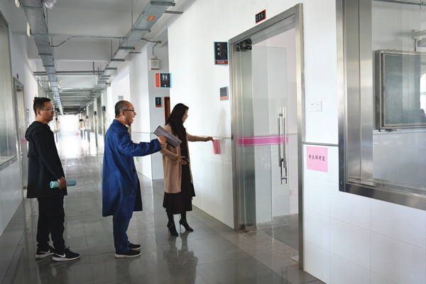 检查过程中,吴樱樱主任等听取了三个专业负责人对此次学测专业技能考试标准化考点布置的介绍,实地查看了考场布置、候考室准备、仪器设备配置运行等情况,详细询问了各考点组织工作安排的各个环节。吴樱樱主任强调了考试过程中的各个程序,对考点工作提出了要求,就考点考场流动交接、考试准备、现场服务、考后等各环节进行了强调,要求各考点高度重视,认真负责,强化细节,服务考试,服务考生。