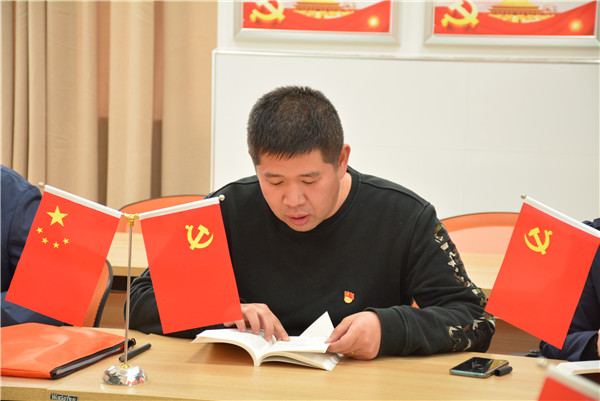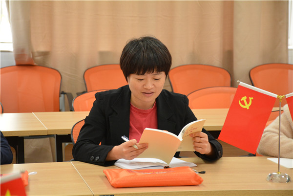 本次诵读由支部党员孔佳宁领学,他带领大家共同学习了《习近平关于“不忘初心、牢记使命”论述摘编》第五章,把政治建设摆在首位,不断增强“四个意识”、坚定“四个自信”、做到“两个维护”。他说,习近平总书记在党的十九大报告中明确指出,党的政治建设是党的根本性建设。坚持实践、实干、实效,把强化“四个意识”、做到“两个维护”作为加强政治建设的主题主线。