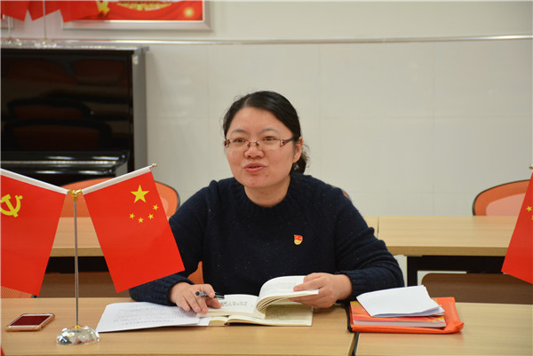 接着,支部书记朱敏敏带领大家学习中国共产党第十九届四中全会公报要点摘编。她从科学制度体系、十三方面“显著优势”、总体目标、十三个“坚持和完善”、重大战略任务、人事信息等几个方面阐述了公报学习内容。她希望大家在今后的工作中,要按照公报要点精神,结合“不忘初心牢记使命”主题教育,坚定信心、保持定力,鼓足干劲、真抓实干,为系部、学校各项事业发展作出更大贡献。