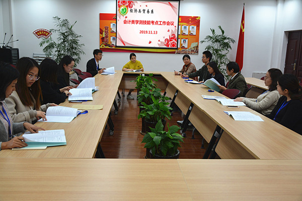 11月13日下午四点,经贸系在C2-209室召开了学测技能考点工作会议,系部主任施红华、副主任陈忠平、江苏省启东第二中专考评员黄晓晓及本系考务工作人员一同参加了本次会议。