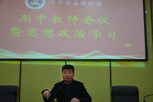 首先,江主任对前半学期的工作进行了简单回顾总结,开学以来系部工作在全体师生的努力下平稳有序的开展,总体情况良好,但是在常规管理上也存在一些问题。江主任希望全体教师坚守常规管理底线,做到“教学五认真”基本要求,恪守本职岗位,塑造教师良好形象。