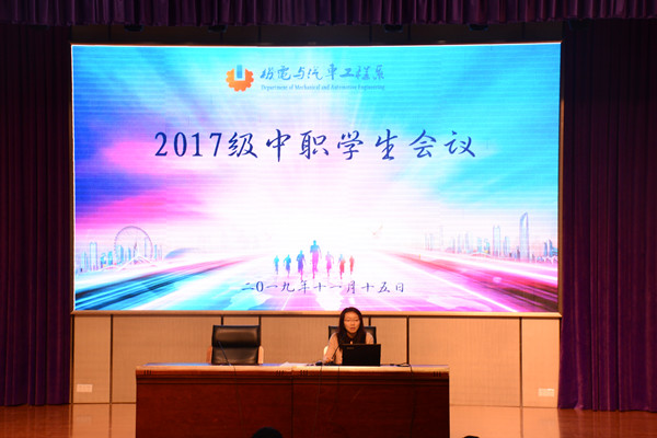 11月15日上午9:50分,机电系在文苑楼报告厅召开2017级中职学生大会,2017级中职班全体班主任和学生出席会议,机电系主任吴樱樱主持会议并讲话。