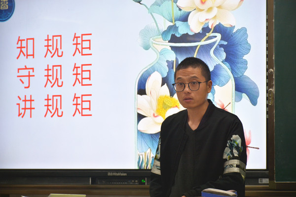 为了进一步帮助学生树立良好的规则意识,规范自己的行为。电信系各班于11月18日上午第一课组织开展了一次以“规矩”为主题的班会课。