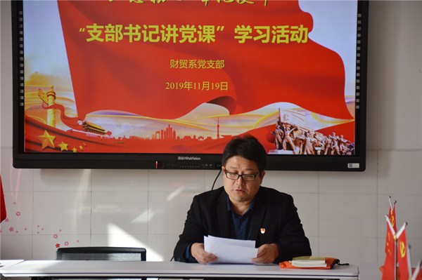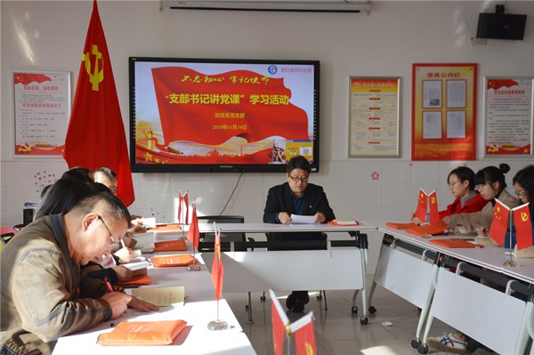 为深入学习贯彻习近平总书记在“不忘初心、牢记使命”主题教育工作会议上的重要讲话精神,根据学校“不忘初心、牢记使命”主题教育领导小组通知精神,财贸系党支部于11月19日上午9:45,在D226党员活动室组织开展了“不忘初心、牢记使命”主题教育“支部书记讲党课”活动。