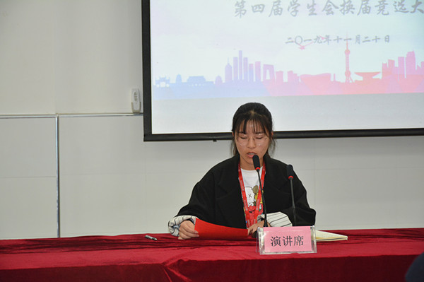 大会由上届副主席范晨璐主持,经贸系主任施红华,副主任周晟参加了会议,各位参与竞选的候选人都精心准备,现场演讲精彩纷呈,赢得一次又一次的热烈掌声。本次共有20名学生参加了主席团、秘书部、环保部、文艺部、学习部等8个部门岗位的竞选。他们激情洋溢、信心满满!他们纷纷表示要用实际行动去实践理想,要用勤奋、踏实的工作态度去完成每一项任务,发挥模范带头作用,全心全意为同学服务。精彩的演说,幽默的语言,良好的互动,不时博得同学们的阵阵掌声。