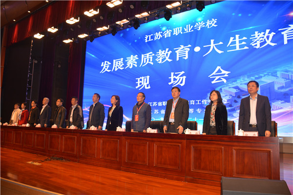 11月21日,江苏省职业学校发展素质教育•大生教育现场会在海门中专隆重举行。 开幕式隆重热烈 上午8点30分,开幕式正式开始江苏省职教学会副会长、秘书长尹伟民,江苏省职教学会德育工作委员会副主任、秘书长,南京市职教(成人)教研室主任章宏,南通市教育局副局长姜学勤,海门市人民政府副市长黄静,海门市委教育工委书记、海门市教育体育局党组书记、局长许新海,江苏省职教学会德育工作委员会副主任、苏州工业园区工业技术学校校长王乃国,江苏省职教学会德育工作委员会副主任、江苏旅游职业学院党委副书记梅纪萍,江苏省职教学会德育工作委员会副主任、宿迁市职业教育与社会教育教研室主任毕进,江苏省职教学会德育工作委员会副秘书长李国珑,南通市教育局职业教育与高等教育处副处长李维,海门市教育体育局党组成员、海门市教师研修中心主任朱国兴,江苏省海门中等专业学校校长徐忠在主席台就坐。