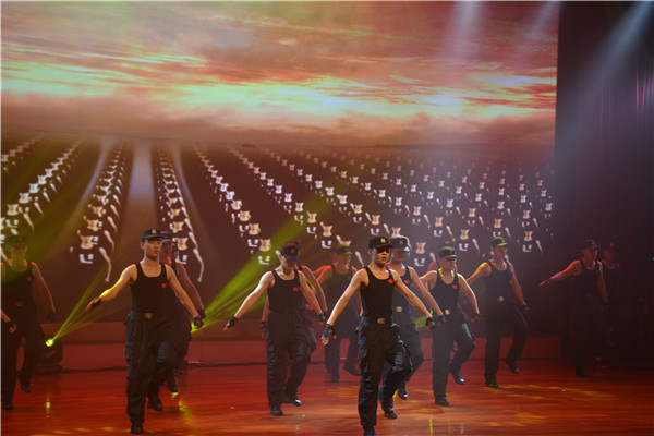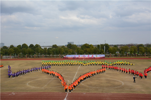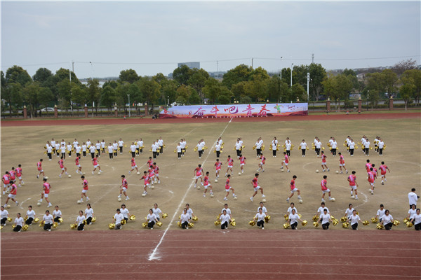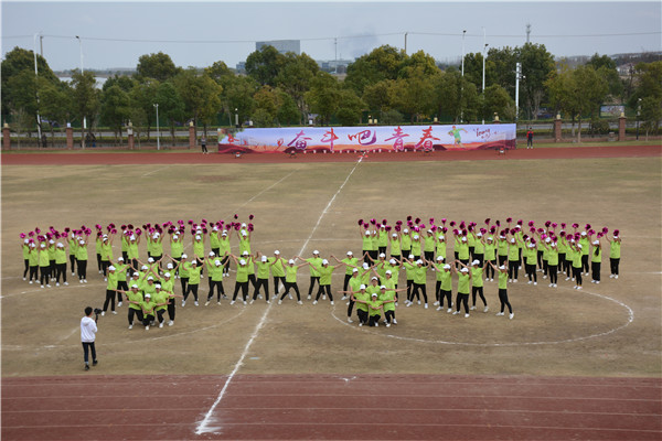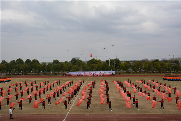 “奋斗吧,青春”团体操表演。花团锦簇、气势恢宏,展示精巧构思,体现团队智慧,彰显海专学生青春朝气和蓬勃力量。