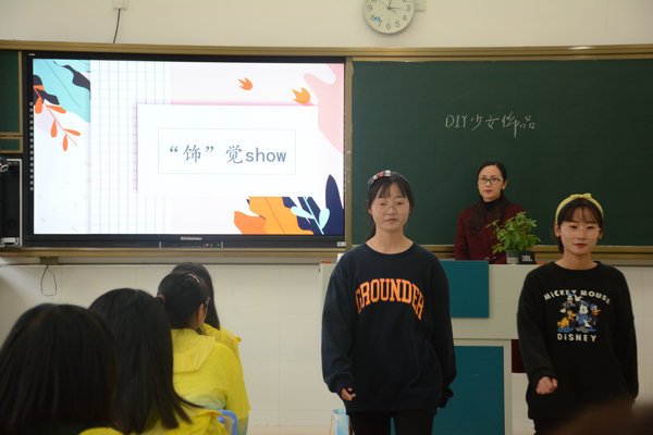 本堂课以一段微型走秀创设情境,迅速又自然地切入课题,大大激发了来宾与学生的兴趣。本课的学习重点为拼色工艺技法的掌握,徐老师通过图片比较与亲手示范等形式展示了操作步骤及方法要点。学生通过实践操作、强化提升、找茬评优等环节,在酣畅淋漓的制作、搭配、阐述过程中,充分展示智慧才能,收获颇多。在愉快的学习氛围中构建了知识体系,实现能力的内化和运用。为今后的就业、创业奠定坚实的基础。(黄煜雯)