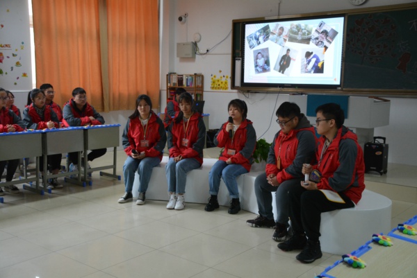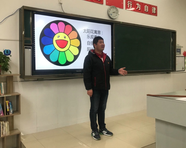 孔佳宁老师以视频“我们的一天”进行导入,展示了学生一天的学习生活场景。在教学过程中,孔老师设计新颖,思路清晰,以留守学生在成长中个年龄段的心理变化为主线,从心中怨恨到理解再到感恩父母,整堂课环节设置精心,留守学访谈生、学生美文朗诵、“太阳花”佩戴仪式、家长来校送惊喜等一系列活动,充分调动了他们的参加积极性。