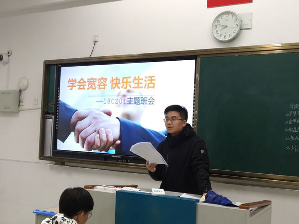 为帮助学生懂得“退一步,海阔天空,让三分,风平浪静”的道理,学会宽容待人,学会与同学和睦相处。信息系于11月25日上午第一节课召开了“学会宽容 快乐生活”主题班会活动。