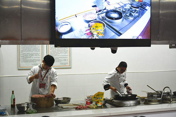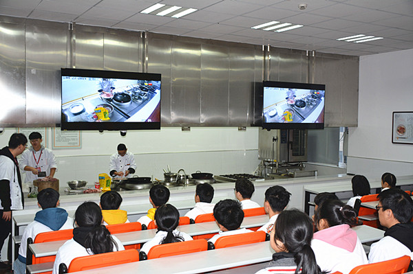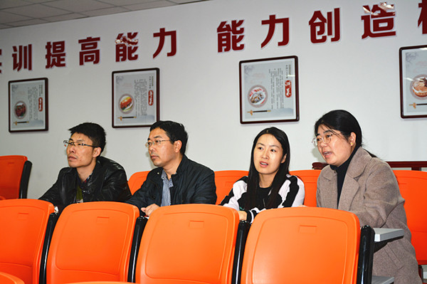 观摩第一站:海专烹饪实训中心。8:40,施红华主任、陈忠平副主任带领研修班领导一行在烹饪实训中心参观,施主任从系部发展、教学开展情况、实训基地建设、实训工作管理等方面作了详细的介绍,希望本次研修活动能实现学校之间的相互学习;随后研修班领导一行观摩了学生的“本帮菜”实训操作,对烹饪专业的实训设备和学生的实操能力给予了极大的赞赏。