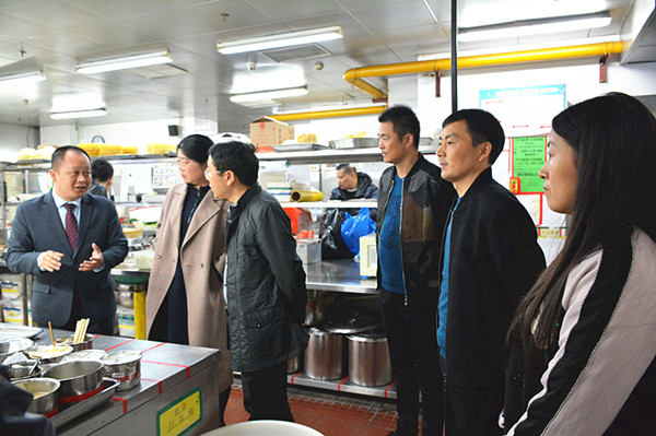 观摩第三站:东恒盛国际大酒店。10:30,施红华主任、陈忠平副主任携研修班领导一行再次来到海专现代学徒制合作单位,东恒盛国际大酒店进行参观和观摩。酒店人力资源部经理陈焕智亲自迎接。大家跟随陈经理参观了各个配菜间、烹饪操作间、餐厅、自助餐厅等,并就酒店对学生的培养方向、学生顶岗实习与就业的相关问题进行了交流,研修班领导一行对海专的实训合作单位很是满意。