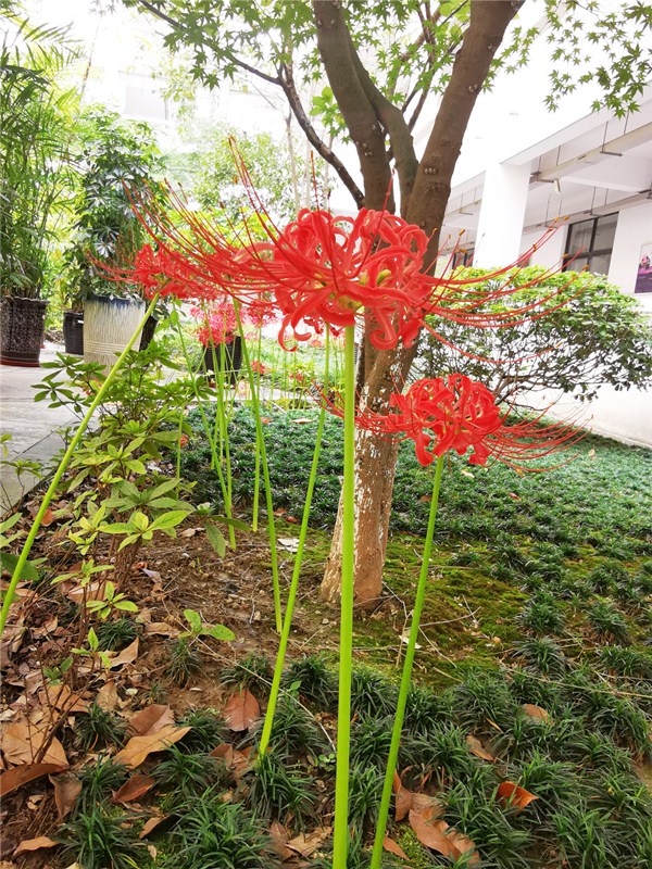 每天,謇公楼总是第一个映染上来自东方的晨曦。阳光慢慢褪去初生的浓郁深红,再经謇公湖的微澜荡涤,稀释为惊艳的亮黄,轻抚在秋叶的面庞。微颤摇落的黄叶,围铺叠加成最美的秋意。曼珠沙华,艳丽如霞,成为大楼天井里最美的点缀。办公室窗台上一盆石莲花,在尘世中坚守着丰润和无暇……謇公搂的光与影里,蕴藏着无限的生机!