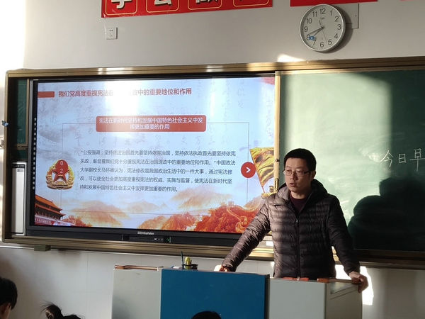 班会活动中,各班班主任能结合班级实际,通过讲解、问答、案例分析等形式,向学生进行法制宣传教育。同学们在老师的引导下积极参与交流与讨论,使学生了解宪法的基本知识,懂得公民享有的基本权利和应履行的基本义务,有利于促进学生成为学法、懂法的好公民。