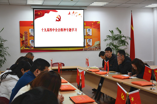 12月3日,下午15点10分,经贸系党支部在C2楼209党员活动室组织召开了党的十九届四中全会精神学习会议,传达学习《中国共产党第十九届中央委员会第四次全体会议公报》。校党委委员茅一娟同志应邀参加了双重组织生活会,会议由支部书记陈忠平同志主持。