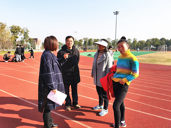 第二议程:上午第三课,综合组无课老师在学校南操场听取了本组顾晓杰老师的一堂体育课。顾老师具有丰富的教学经验,他结合了教学内容及体育学科的教学特点,通过新颖的教学设计,充分调动了学生的积极性,合理安排了教学内容,展示了其教学水平,取得了较好的教学效果。课后,组内成员进行了评课,并探讨了体育教学新思路与安全保障意识。