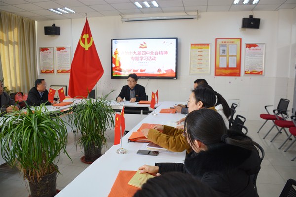 王飞书记首先强调指出,党的十九届四中全会是我们党站在“两个一百年”奋斗目标历史交汇点上召开的一次十分重要的会议,是在新中国成立70周年之际、我国处于中华民族伟大复兴关键时期召开的一次具有开创性、里程碑意义的会议。王书记带领大家一起着重学习了包括“坚持和完善党的领导制度体系,提高党科学执政、民主执政、依法执政水平”“坚持和完善人民当家作主制度体系,发展社会主义民主政治”“坚持和完善中国特色社会主义法治体系,提高党依法治国、依法执政能力”“坚持和完善中国特色社会主义行政体制,构建职责明确、依法行政的政府治理体系”等在内的十三个“坚持和完善”的相关内容。
