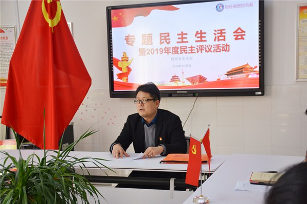 根据习近平总书记关于“不忘初心、牢记使命”主题教育重要讲话和重要指示批示精神,按照海教组发〔2019〕12号文件和市教育工委通知要求,在学校“不忘初心、牢记使命”主题教育领导小组统一部署安排下,财贸系党支部于12月6日下午13:50在D226党员活动室举行了2019主题教育专题组织生活会暨民主评议党员活动,会议由支部书记王飞同志主持。