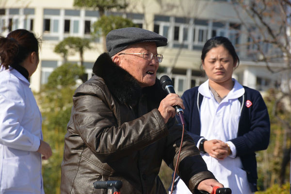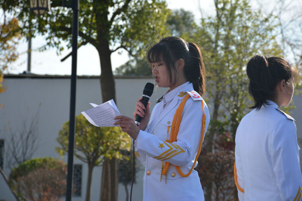 升旗仪式上,志愿者代表作了 “铭记先烈功勋,不忘前辈伟业,当好爱国强国接班人”演讲。她说:“尊老,爱老,敬老是我们中华民族的传统美德,关心、陪伴好曾经为我们今天的幸福生活作出过贡献的每一位长辈是我们应尽的义务。让他们的子女能够在建设祖国,保卫祖国的不同岗位上更加安心工作,也是我们爱国行为的具体体现”。八十多岁的张慎祥爷爷向大家讲述了五星红旗的含义,并对同学们提出了殷切的希望。