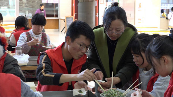 升旗仪式结束,志愿者们和平时一样,开始帮助、陪伴老人开展各类活动。中午12点半,志愿者们又聚集在申丞养老中心的餐厅,为老人们包起了馄饨。